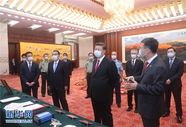 7月31日上午,北斗三号全球卫星导航系统建成暨开通仪式在北京举行。中共中央总书记、国家主席、中央军委主席习近平出席仪式,宣布北斗三号全球卫星导航系统正式开通并参观北斗系统建设发展成果展览展示。 新华社记者 鞠鹏 摄