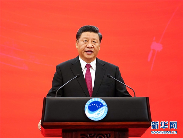 7月31日上午,北斗三号全球卫星导航系统建成暨开通仪式在北京举行。中共中央总书记、国家主席、中央军委主席习近平出席仪式,宣布北斗三号全球卫星导航系统正式开通。 新华社记者 李响 摄