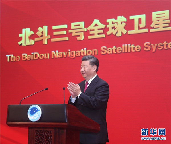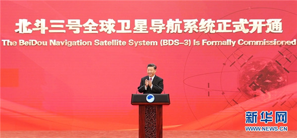 7月31日上午,北斗三号全球卫星导航系统建成暨开通仪式在北京举行。中共中央总书记、国家主席、中央军委主席习近平出席仪式,宣布北斗三号全球卫星导航系统正式开通。 新华社记者 燕雁 摄