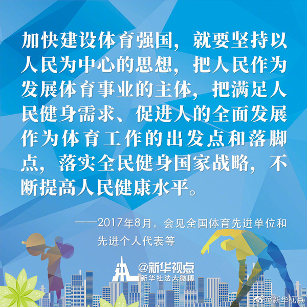 今年8月8日是我国第12个“全民健身日”。党的十八大以来,以习近平同志为核心的党中央高度重视关心体育工作,谋划、推动体育事业改革发展,将全民健身上升为国家战略,推动全民健身和全民健康深度融合。今天,一起来重温习近平总书记关于推进全民健身、体育强国事业的金句⬇