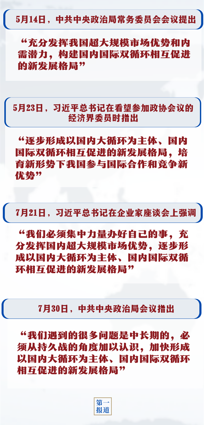 “以国内大循环为主体、国内国际双循环相互促进的新发展格局”,是以习近平同志为核心的党中央,基于当前和今后一个时期国内外形势、着眼高质量发展作出的重大战略部署。多国人士对“第一报道”表示,这一战略部署为中国经济发展指明了新方向,也为全球经济复苏创造了新机遇——