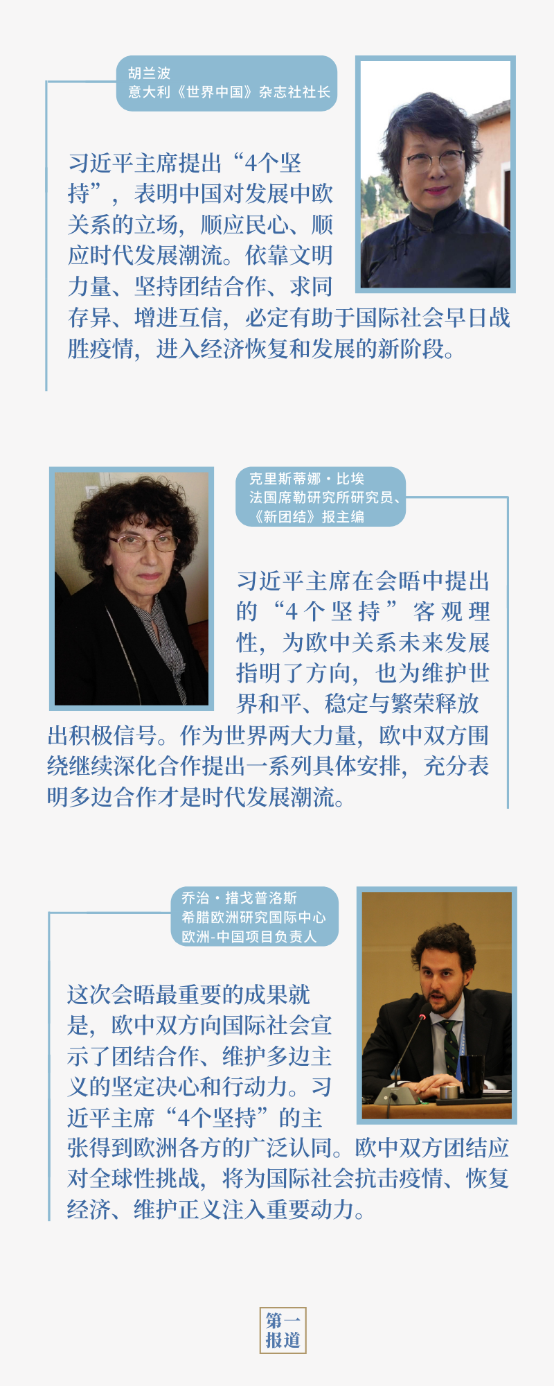 习主席关于中欧关系的这些重要论述,意涵深刻。“4个坚持”,为下阶段中欧关系发展指明方向,也体现中国深化中欧全面战略伙伴关系的诚意担当。