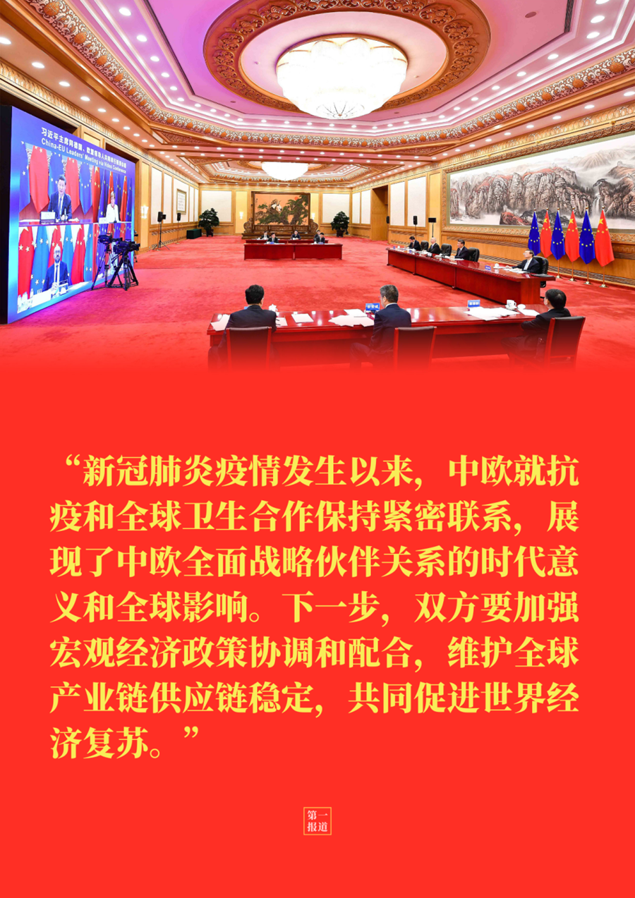 下一步,中欧合作如何推进?习主席指明重点领域:加强宏观经济政策协调和配合,加强疫苗研发合作,有序恢复人员往来、为货物跨境流动提供便利,积极开展对非三方合作。