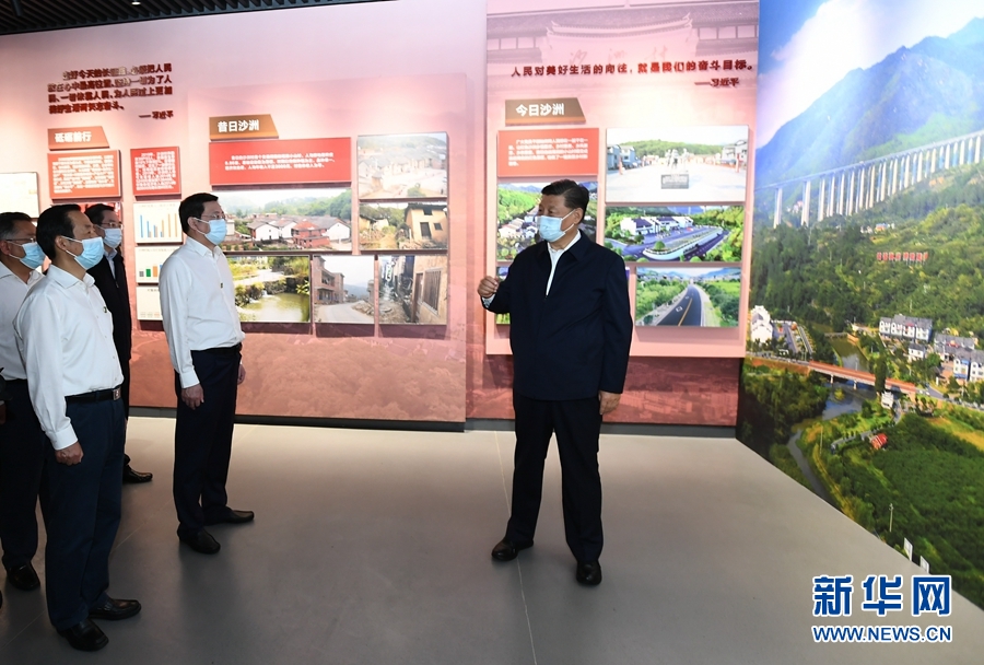 9月16日至18日,中共中央总书记、国家主席、中央军委主席习近平在湖南考察。这是16日下午,习近平在郴州市汝城县文明瑶族乡沙洲瑶族村“半条被子的温暖”专题陈列馆,了解当地加强基层党的建设、开展红色旅游和红色教育情况。 新华社记者 谢环驰 摄
