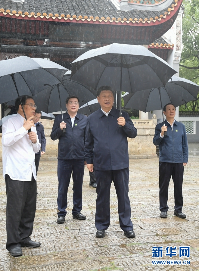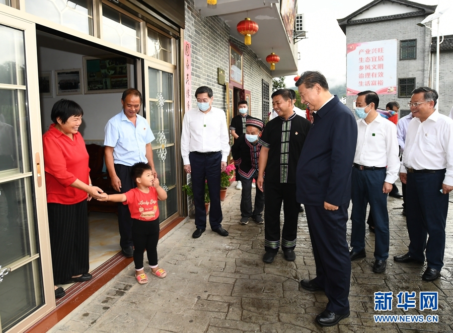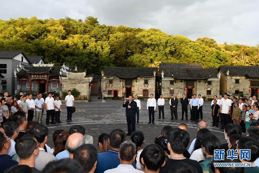 9月16日至18日,中共中央总书记、国家主席、中央军委主席习近平在湖南考察。这是16日下午,习近平在郴州市汝城县文明瑶族乡沙洲瑶族村察看村容村貌,同村民亲切交谈。 新华社记者 谢环驰 摄
