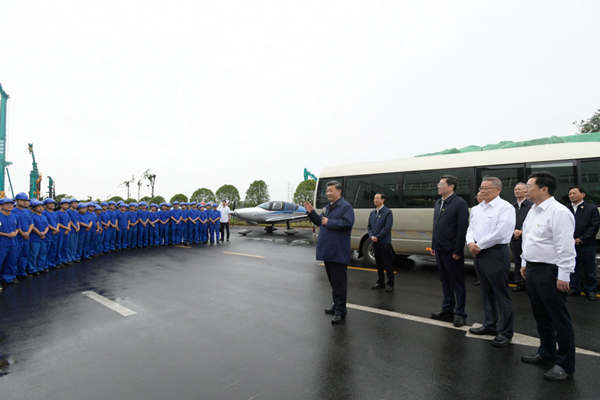 9月17日下午,习近平在长沙市山河智能装备股份有限公司考察时,同企业职工亲切交流。(新华社记者李学仁 摄)