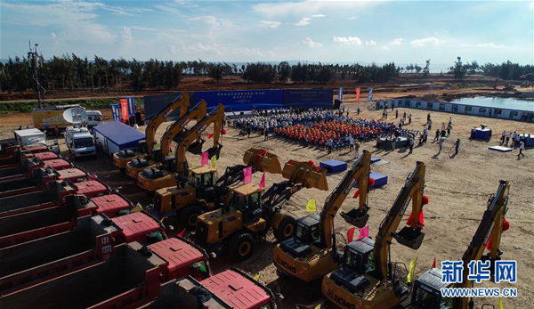 海南自由贸易港建设项目(第三批)集中开工仪式现场(9月13日摄,无人机照片)。新华社记者 杨冠宇 摄