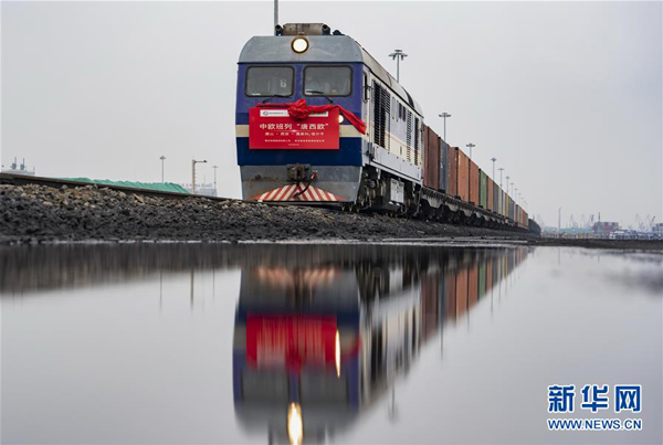 “唐西欧”中欧班列从河北唐山曹妃甸港通用码头铁路场站驶出(8月26日摄)。新华社记者杨世尧摄