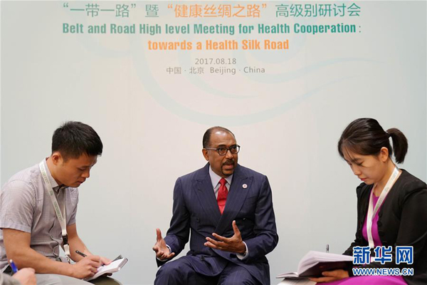 联合国副秘书长、联合国艾滋病规划署执行主任米歇尔·西迪贝在“一带一路”暨“健康丝绸之路”高级别研讨会期间接受新华社记者专访(2017年8月18日摄)。新华社记者 张玉薇 摄