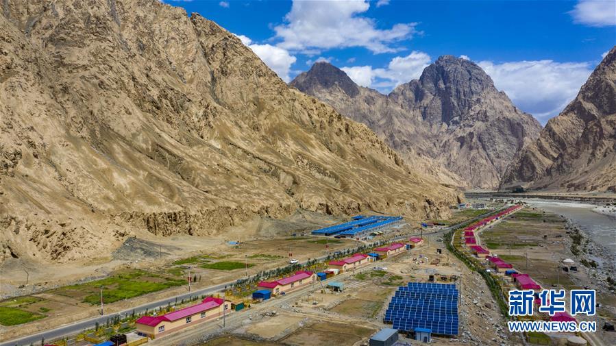新疆塔什库尔干塔吉克自治县大同乡一处易地扶贫搬迁安置点(无人机照片,2019年6月18日摄)。新华社记者 胡虎虎 摄