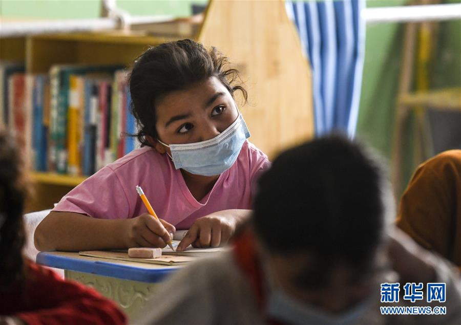 新疆和田县塔瓦库勒乡巴克墩小学学生在认真听讲(5月16日摄)。 新华社记者 王菲 摄