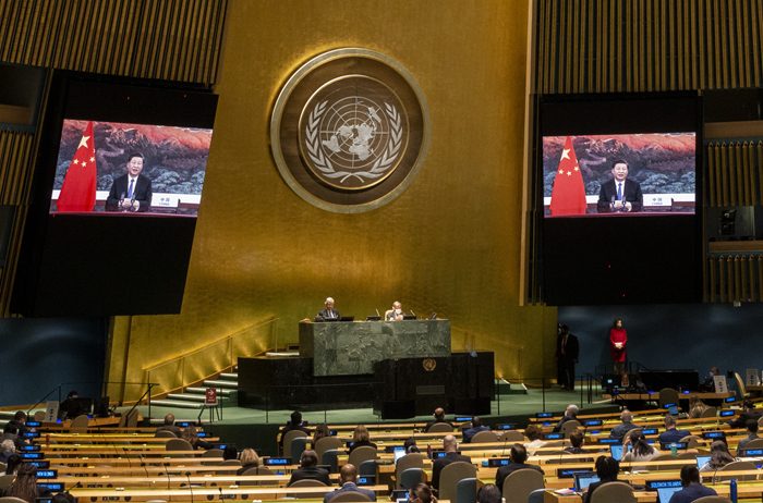 9月22日,国家主席习近平在第七十五届联合国大会一般性辩论上发表重要讲话。新华社记者 鞠鹏 摄