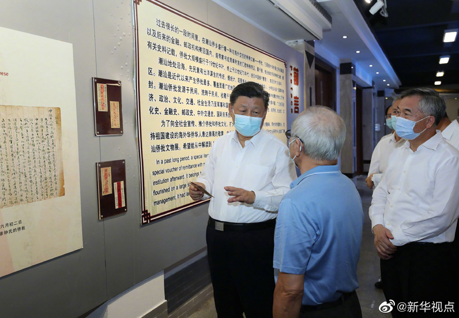 习近平总书记13日下午来到广东省汕头市小公园开埠区,走进开埠文化陈列馆、侨批文物馆,了解汕头开埠历史、设立经济特区以来的建设发展情况,和潮汕侨胞心系家国故土、支持祖国和家乡建设的历史。随后,习近平步行察看开埠区街区人文历史风貌,同市民群众亲切交流。(文字记者:张晓松、朱基钗 摄影记者:鞠鹏、王晔、李响)