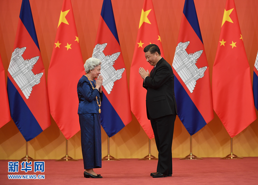 11月6日,国家主席习近平在北京人民大会堂为柬埔寨太后莫尼列举行中华人民共和国“友谊勋章”颁授仪式。 新华社记者 申宏 摄