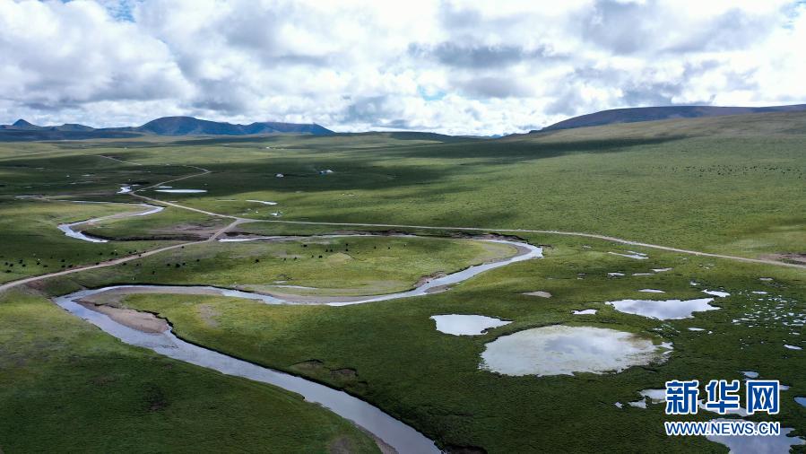 这是8月14日拍摄的长江南源当曲河道(无人机照片)。新华社记者 吴刚 摄