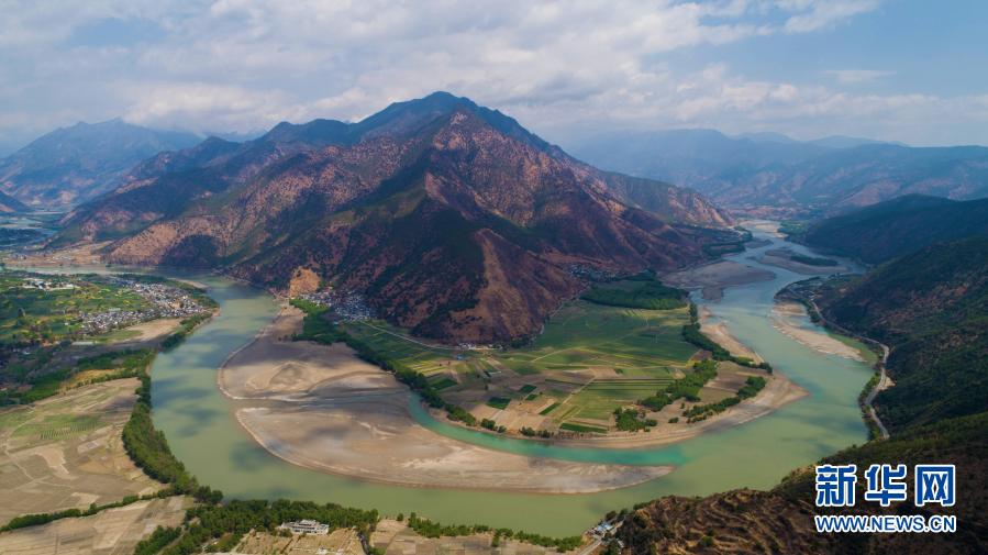 这是位于云南省丽江市玉龙纳西族自治县石鼓镇的“长江第一湾”(2019年3月17日摄,无人机照片)。新华社记者 胡超 摄