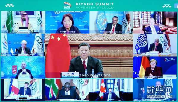 11月22日晚,国家主席习近平在北京以视频方式出席二十国集团领导人第十五次峰会第二阶段会议,重点阐述关于可持续发展问题的看法。 新华社记者 王晔 摄