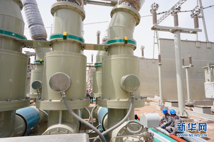 这是2019年5月8日,工人在位于河北省张家口市康保县姚家滩村的张北可再生能源柔性直流电网康保换流站施工。新华社记者 杨世尧 摄