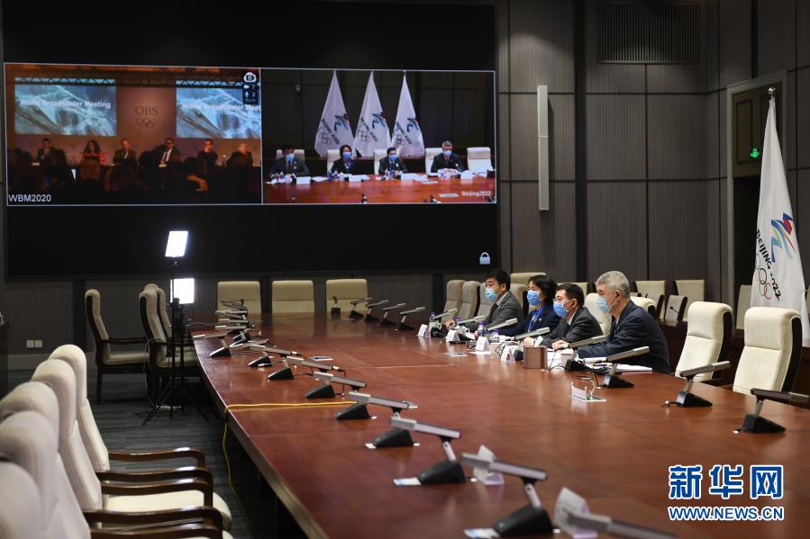 这是2020年2月24日,北京冬奥会和冬残奥会2020年世界转播商大会北京分会场通过视频连线方式举行。新华社记者 鞠焕宗 摄