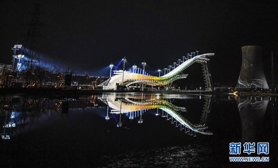 这是2019年12月14日拍摄的北京首钢滑雪大跳台夜景。新华社记者 夏一方 摄