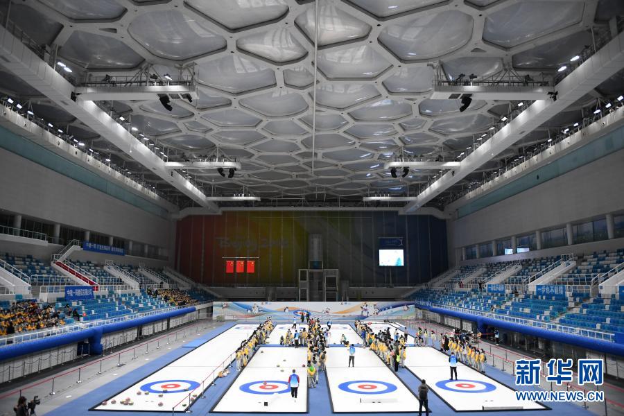 这是2020年12月21日拍摄的国家游泳中心奥林匹克比赛大厅的冰壶赛道。新华社记者 张晨霖 摄