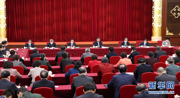 3月6日,中共中央总书记、国家主席、中央军委主席习近平看望参加全国政协十三届四次会议的医药卫生界、教育界委员,并参加联组会,听取意见和建议。中共中央政治局常委、全国政协主席汪洋参加看望和讨论。新华社记者 王晔 摄