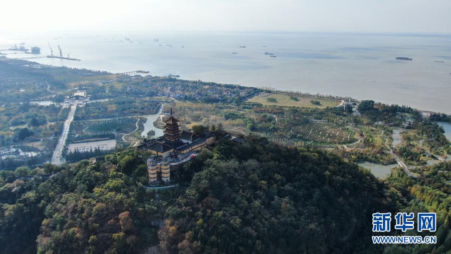 2020年11月13日拍摄的南通狼山及附近江景(无人机照片)。近年来,江苏南通全面实施五山及沿江地区生态保护和修复工作,促进长江岸线水土保持和水源涵养。新华社记者 季春鹏 摄