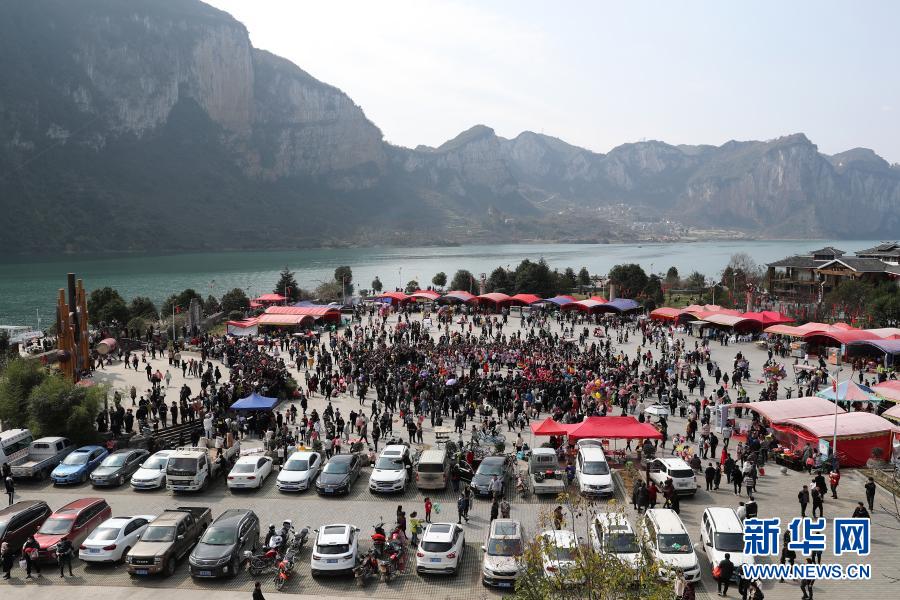 2021年2月17日,贵州省毕节市黔西县新仁苗族乡化屋村同心广场游人如织。新华社发(史开心 摄)