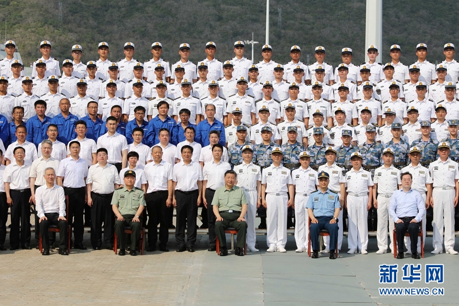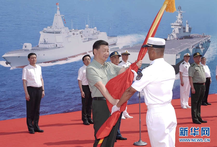 海军三型主战舰艇——长征18号艇、大连舰、海南舰23日在海南三亚某军港集中交接入列。中共中央总书记、国家主席、中央军委主席习近平出席交接入列活动。