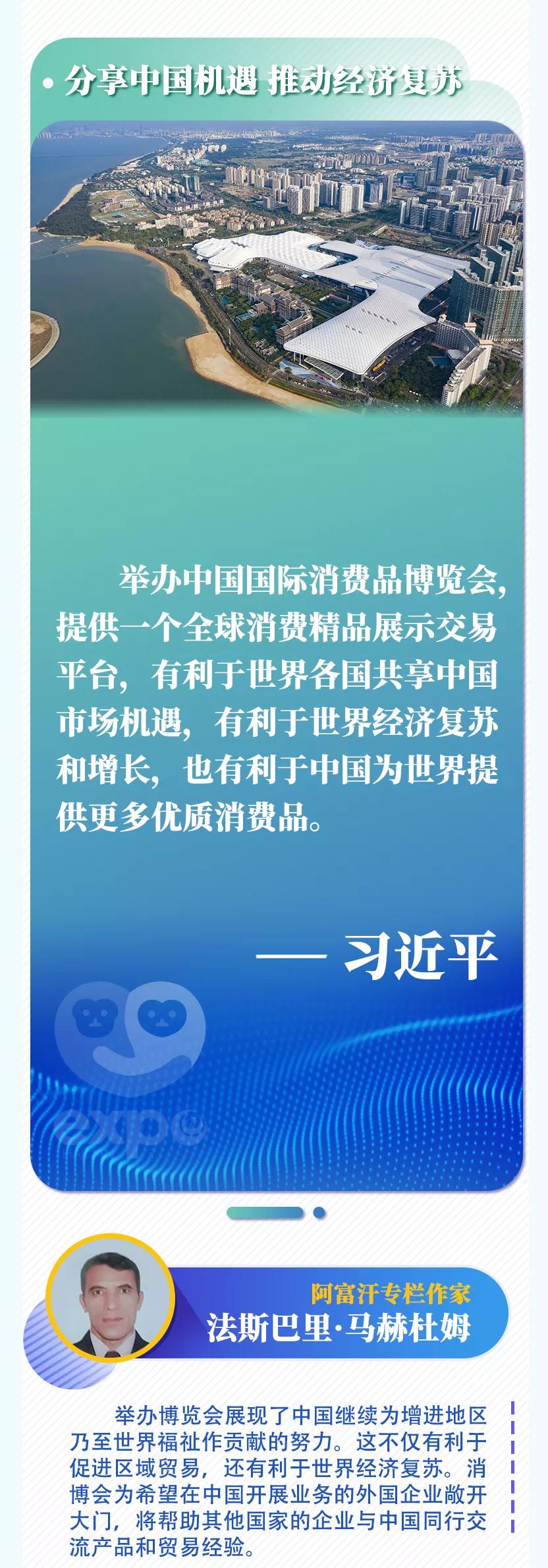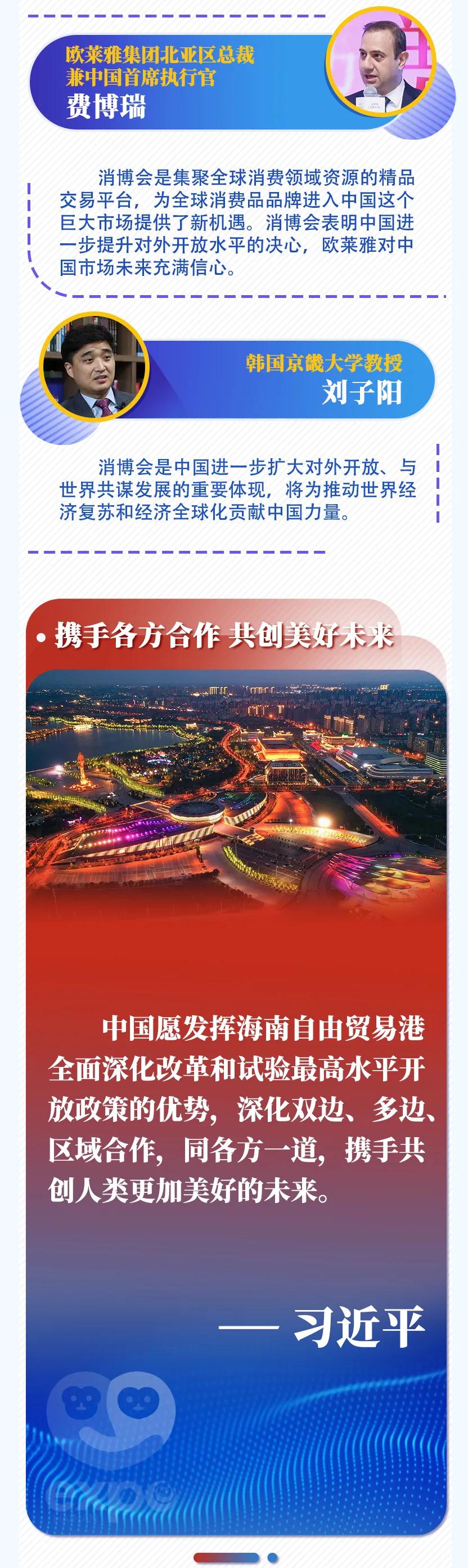 首届中国国际消费品博览会6日在海南省海口市开幕,国家主席习近平致贺信。多国人士表示,举办国际消费品博览会不仅是中国同各国共享发展机遇的重大举措,还将对各国加强合作、实现互利共赢产生重要影响。