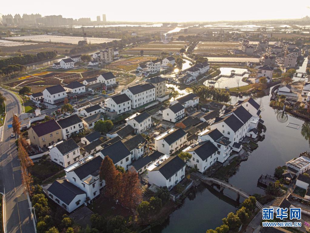 嘉兴市秀洲区油车港镇胜丰村景色(无人机照片,2020年12月15日摄)。新华社发(江汉 摄)