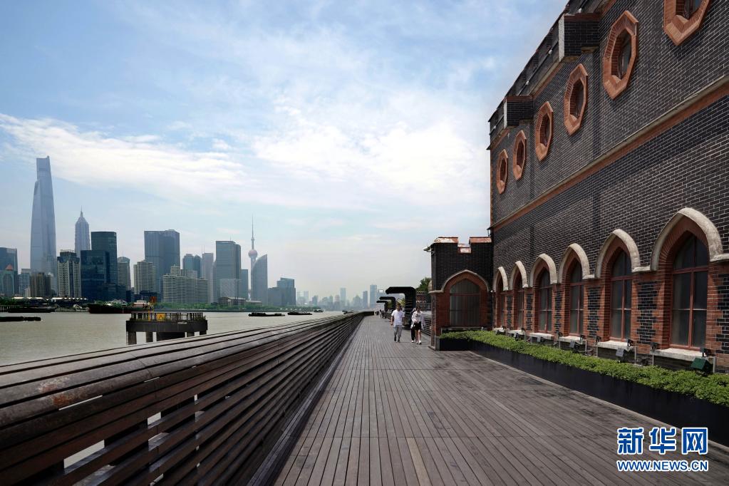 5月15日,市民在杨浦滨江公共空间杨树浦水厂段的栈桥上漫步。新华社记者 刘颖 摄