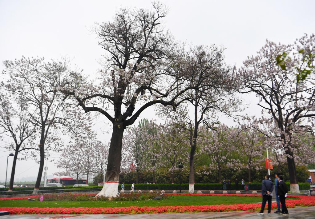焦裕禄干部学院门口,一棵泡桐树粗壮挺拔,华盖如云。这棵已生长了58年的老树不负期待,桐花再次绽放。