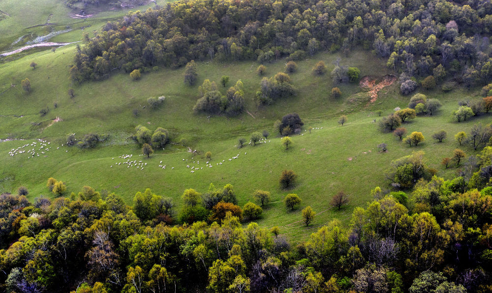 2021年5月4日拍摄的陕西陇县关山草原旅游风景区一角(无人机照片)。新华社记者 陶明 摄