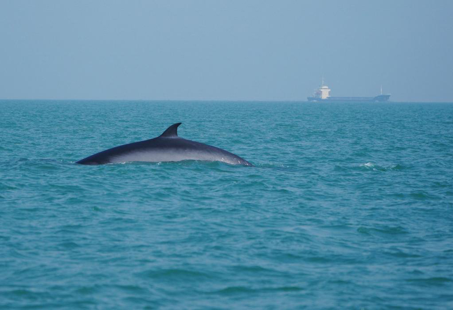 2021年1月15日,一头布氏鲸在广西涠洲岛海域游弋。新华社记者 陶希夷 摄