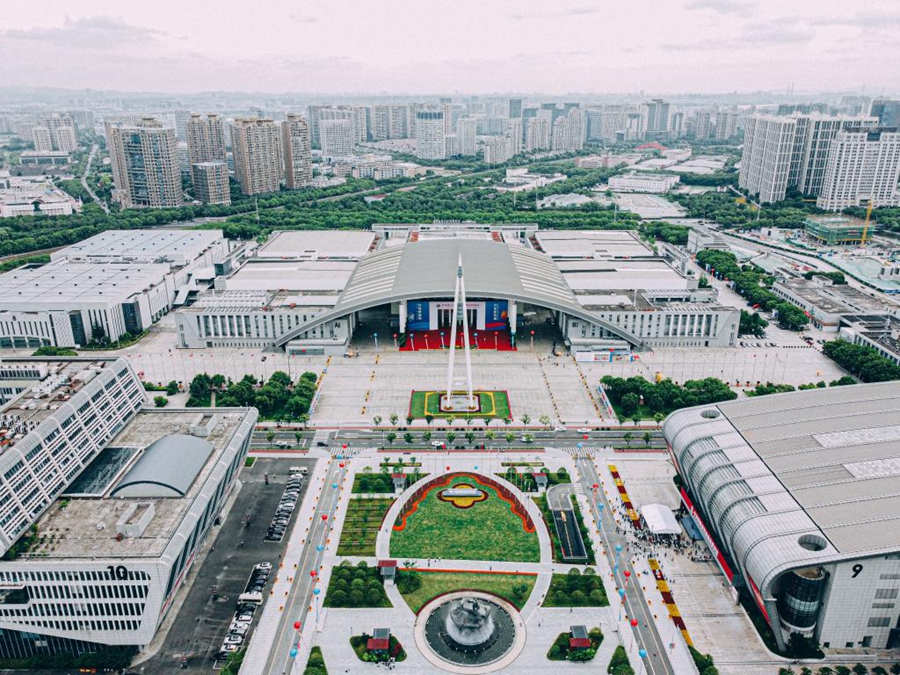 这是6月8日拍摄的第二届中国—中东欧国家博览会主会场宁波国际会议展览中心(无人机照片)。新华社记者 江汉 摄