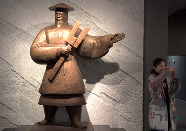 这是2019年10月16日在二里头夏都遗址博物馆内拍摄的大禹雕像。新华社记者李安摄