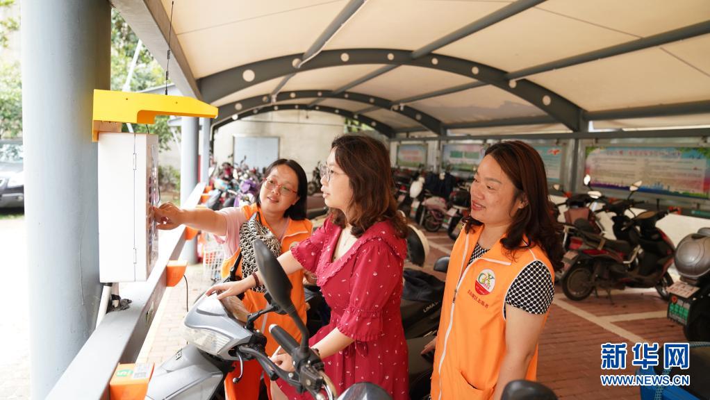 6月24日,“清风志愿者服务队”的成员在江西省南昌市青山湖区和苑小区指导居民使用电瓶车充电装置。新华社记者胡晨欢 摄