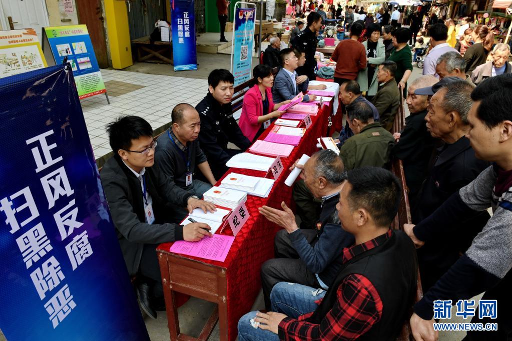 2020年1月6日,福建省福州市永泰县公安干警在扫黑除恶专项斗争宣传活动上向群众介绍专项斗争成果。新华社记者 张国俊 摄