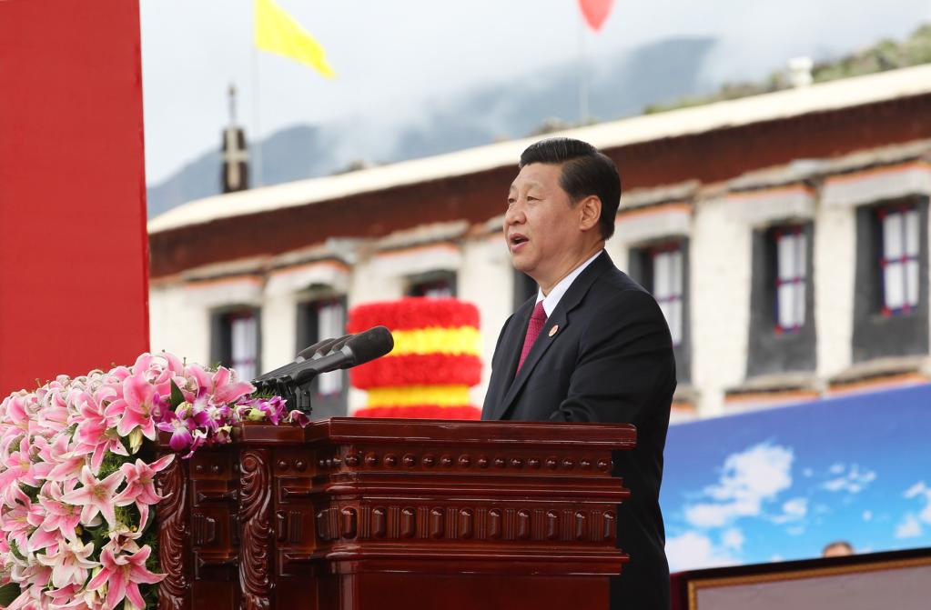 2011年7月19日,西藏和平解放60周年庆祝大会在拉萨举行。习近平在庆祝大会上讲话。新华社记者 丁林 摄