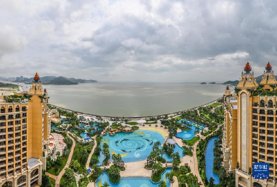 这是位于横琴国际休闲旅游岛的珠海长隆海琴湾酒店海景客房和泳池(2019年4月19日摄)。新华社记者 刘大伟 摄