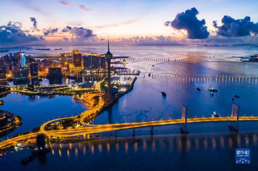 晨曦中的澳门半岛(2020年7月29日摄,无人机照片)。新华社记者 张金加 摄