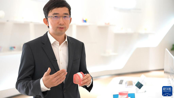 “80后”海归袁玉宇介绍他创立的广州迈普再生医学科技有限公司研发的产品(2019年2月3日摄)。新华社记者 周自扬 摄