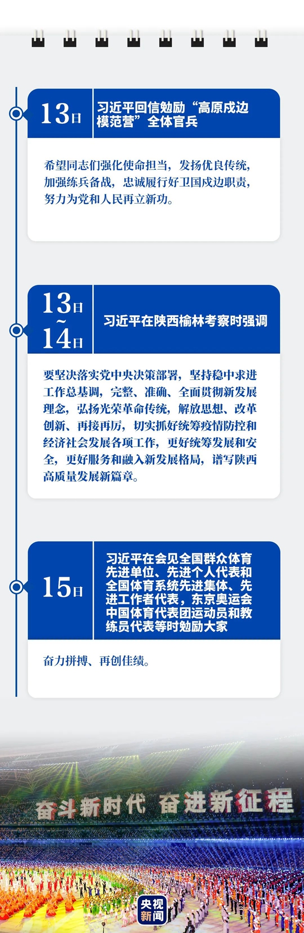 刚刚过去的9月,给人民英雄敬献花篮,缅怀英烈、表达哀思;赴革命旧址考察,强调坚守信仰、坚定信念;出席重要会议,擘画为党育人、为国育才;开展多次“云外交”活动,主张讲信修睦、合作共赢……习近平行程满满,话语铿锵。