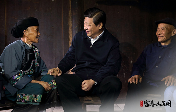 2013年11月3日,习近平总书记在湘西土家族苗族自治州花垣县排碧乡十八洞村同村干部和村民座谈。