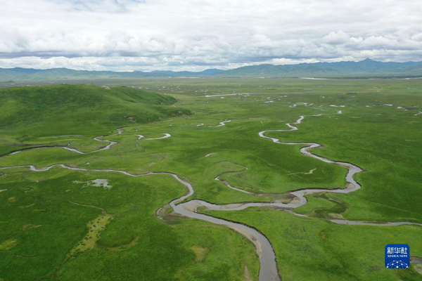 这是7月15日拍摄的甘肃省玛曲县阿万仓湿地(无人机照片)。新华社记者 文静 摄