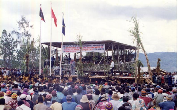 图为1998年,在巴新的菌草技术重演示范试验成功现场会现场。(国家菌草工程技术研究中心供图)