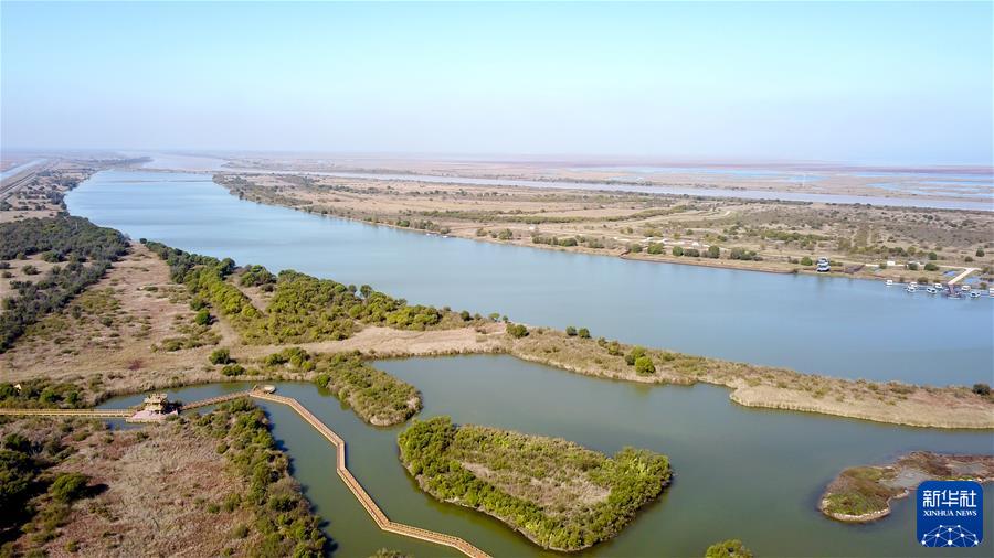 山东黄河三角洲国家级自然保护区风貌(2021年10月27日摄,无人机照片)。新华社记者 郭绪雷 摄