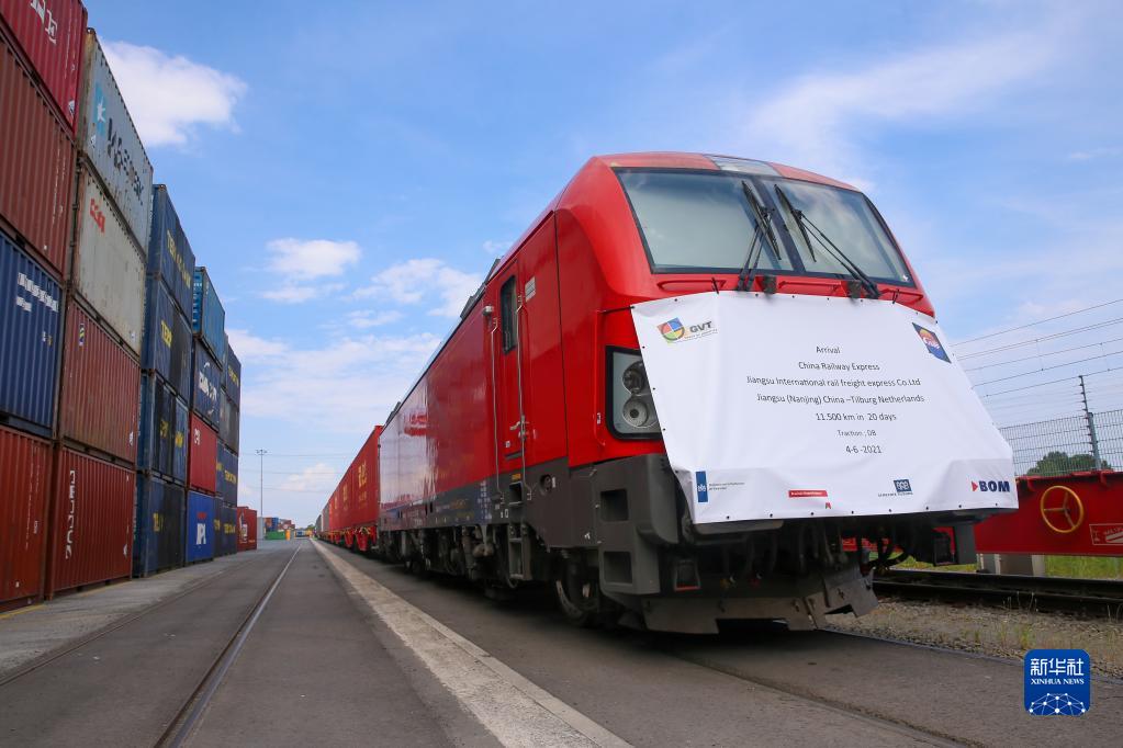 2021年6月4日,首趟从中国江苏南京至荷兰蒂尔堡的中欧班列抵达荷兰蒂尔堡。新华社记者 郑焕松 摄
