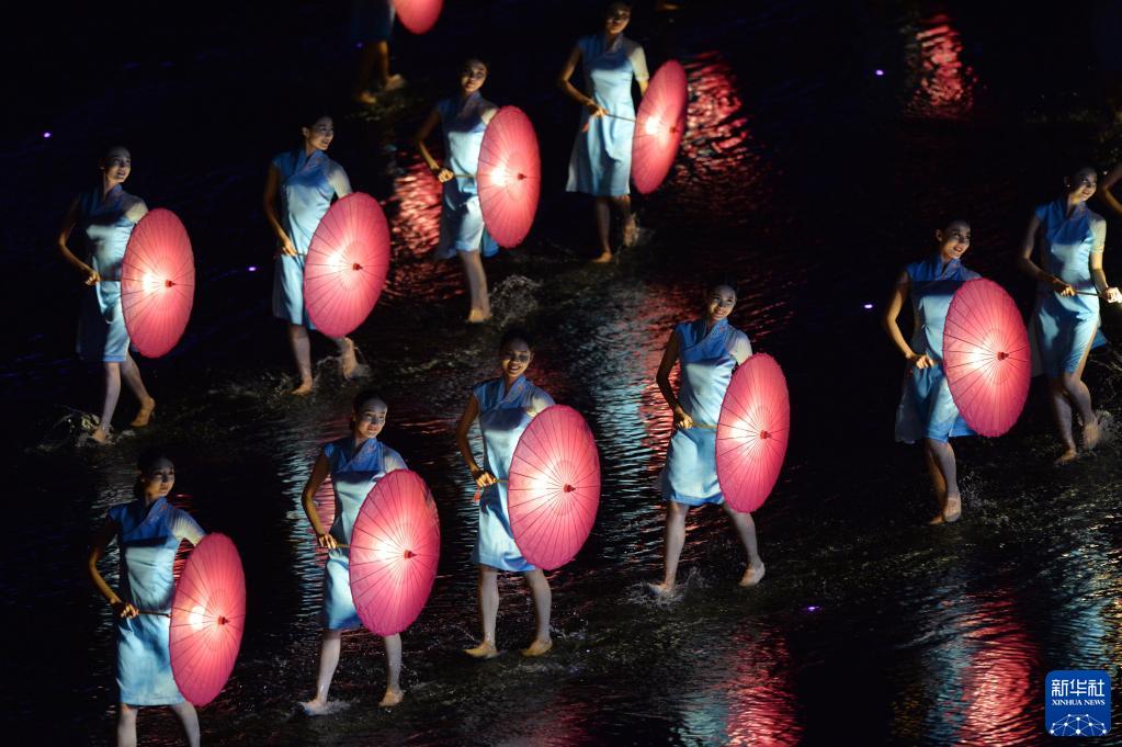演员在西湖景区进行的G20杭州峰会文艺演出《最忆是杭州》中表演《难忘茉莉花》(2016年9月4日摄)。新华社记者 黄宗治 摄